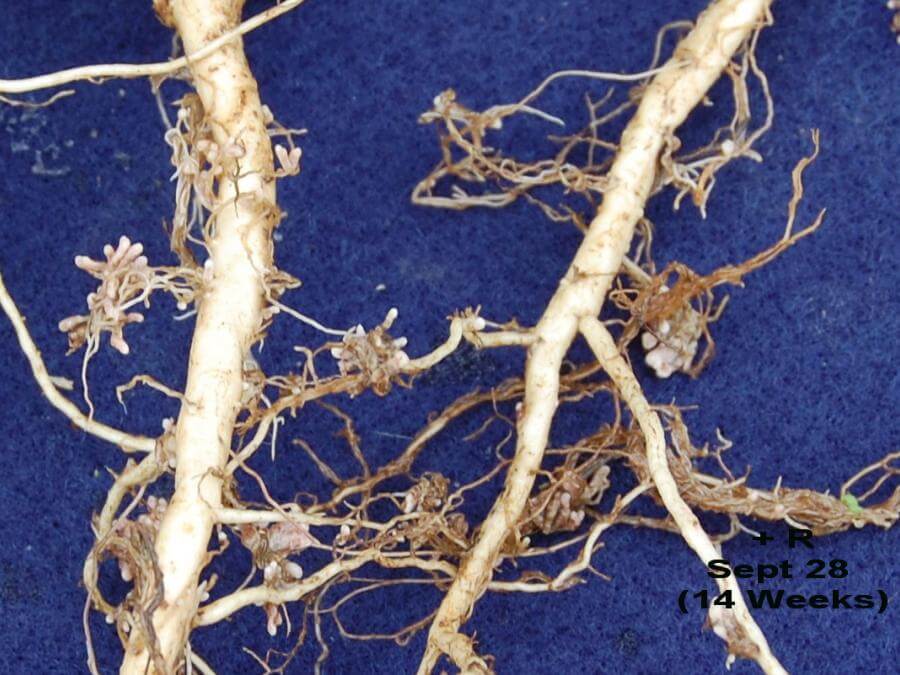 Most improved legume varieties are bred for superior performance for all important traits including an ability to serve as the best host for Rhizobium. Nitro-Coat®, by delivering high numbers of effective Rhizobium strains and other additives, simply facilitates and maximizes the inherent infection, nodulation, and nitrogen fixation potential of any improved variety. One would therefore need to ask themselves the practical question: Why would I pay proprietary prices for raw seed of an improved variety and then take the risk of inoculating the seed myself which may result in poor Rhizobium infection? Otherwise, one might as well buy and take that same risk with cheap commodity seed. The Nitro-Coat® process maximizes a variety's performance capability.
