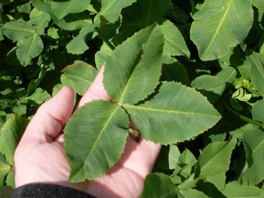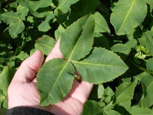 Once you see balansa clover, you’ll never forget it. Especially if you observe this annual clover at multiple times from initial planting to full maturity. Balansa starts off with very little visible growth in the fall. Mostly what can be seen is a small multi-branched rosette emerging from a single taproot. During this stage balansa branches are close to the ground. This growth pattern allows the young balansa plants to both persist and form additional branches even under intensive grazing regimes. Over the winter, the roots continue to grow, although not much top-growth is visible. Then, in early spring, as the days begin to get longer and the temperature start to warm, watch out! This stuff really starts to grow - up to 2 inches per day! At this stage, the stems turn upright causing the plants to grow up to three feet tall. By full maturity, balansa’s finger-thick, hollow-tubed stems can extend a length of 10-feet and produce palm-size leaves!