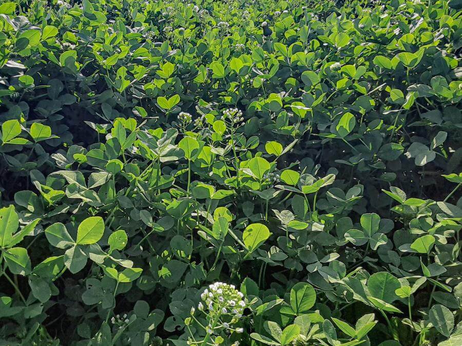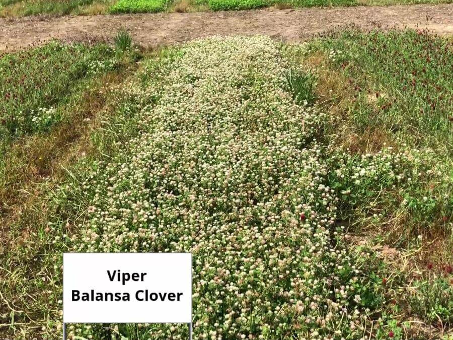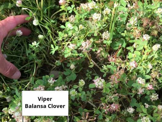 Viper is quick to germinate, with better vigor/earlier growth than some other balansa varieties. Initially, Viper forms a small, multi-branched rosette emerging from a single, deep taproot. Under a grazing regime, Viper will remain prostrate. However, allowed to grow, Viper’s stems will eventually turn upright, forming a multi-branched hollow stem with copious amounts of plant mass up to three feet high.